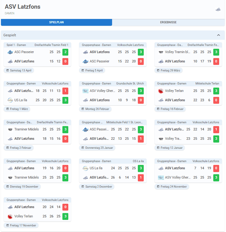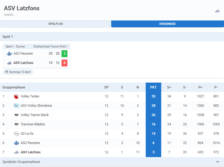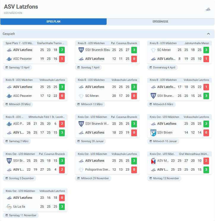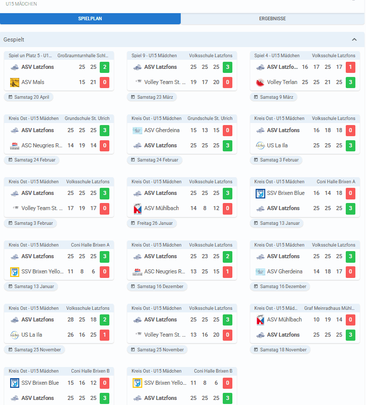 Spielplan, Ergebnisse und Tabelle U15