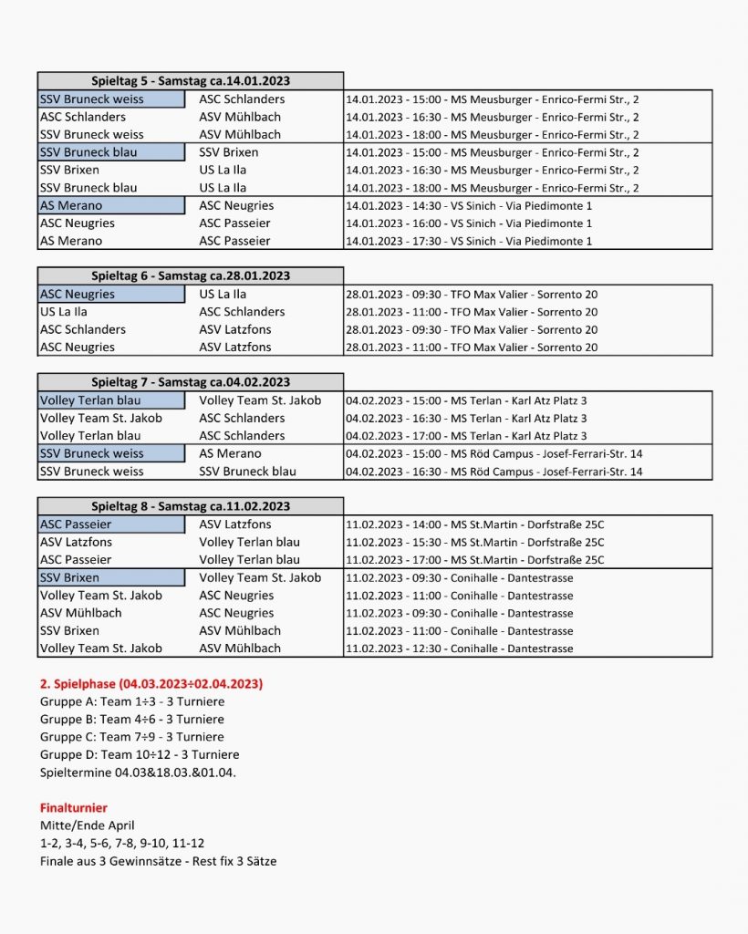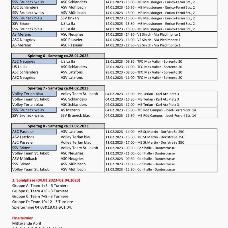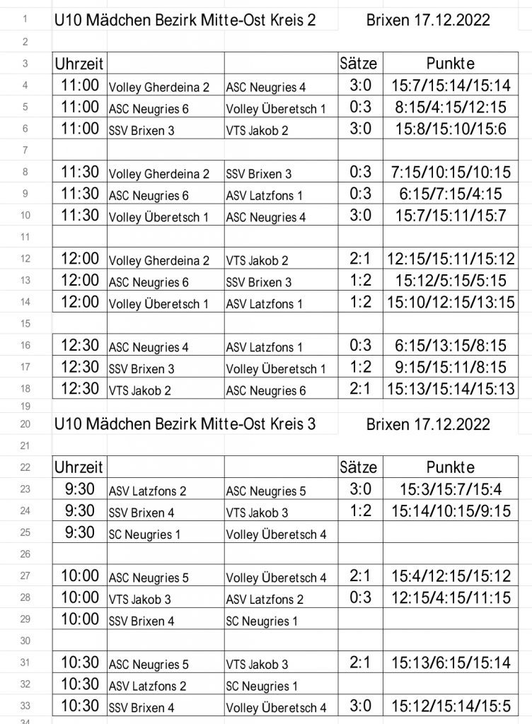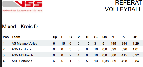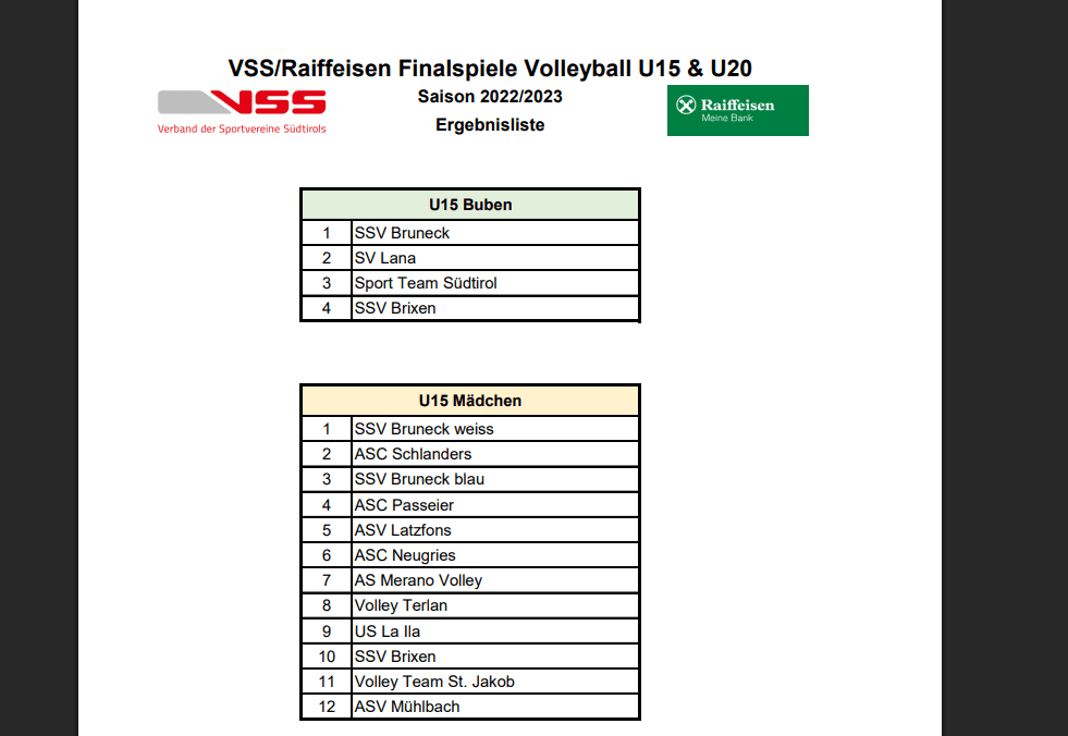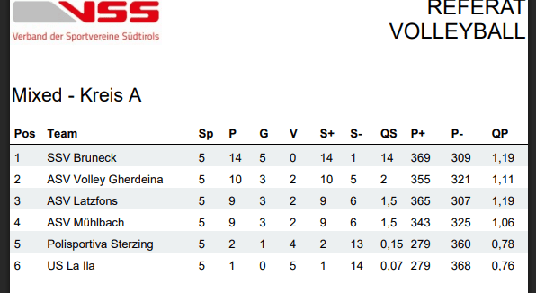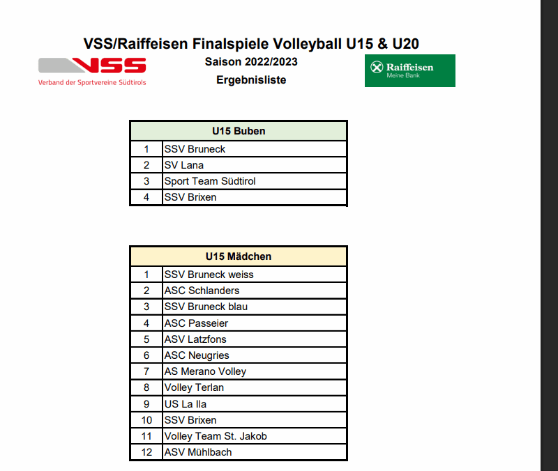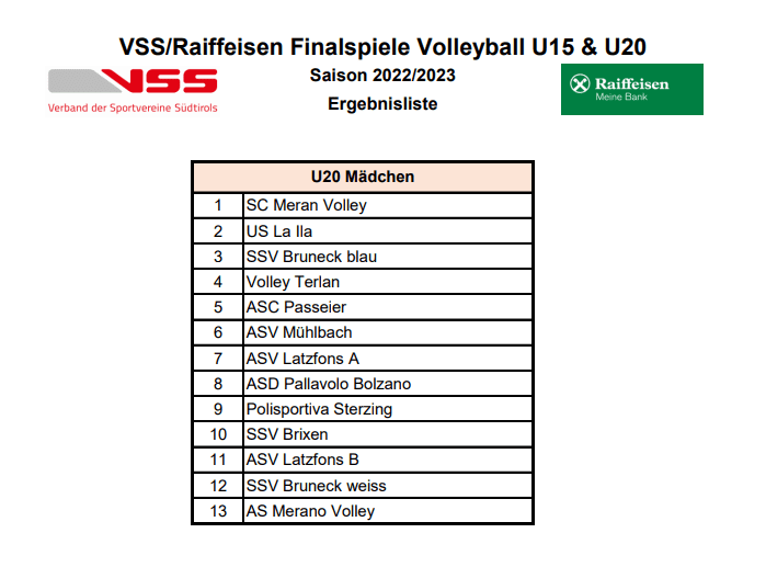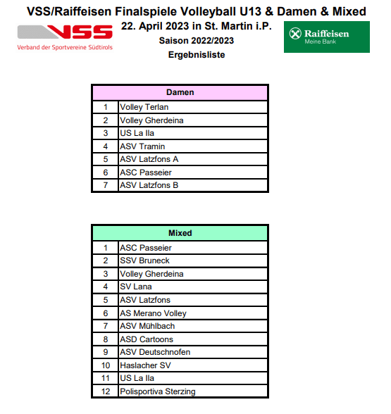 In der Vorrunde belegte Latzfons A den 4. Platz und Latzfons B den 6. Platz