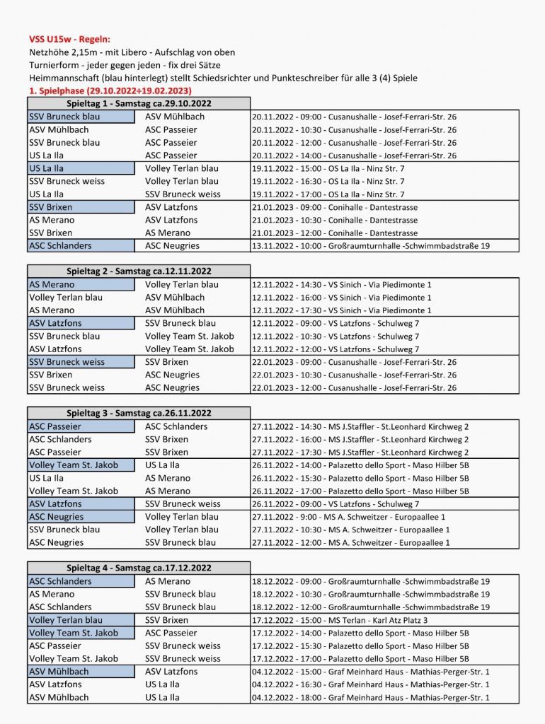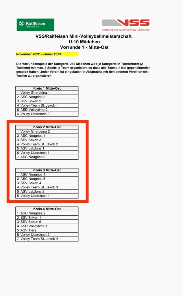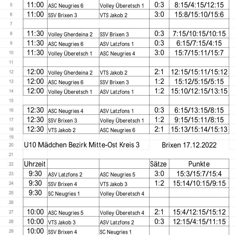 Unsere zwei U20 Mädchen haben in zwei Gruppen gespielt 1-6 Gruppe und eine 1-7 Gruppe