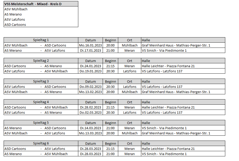 Mannschaften 2022/2023