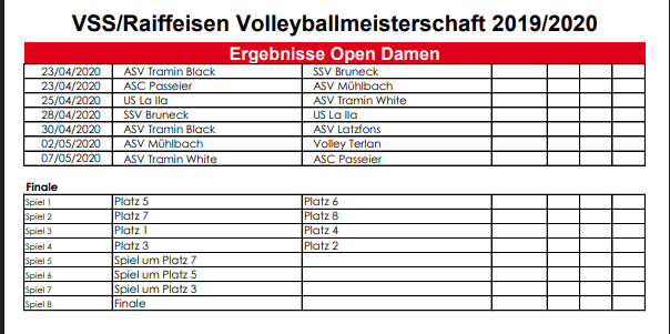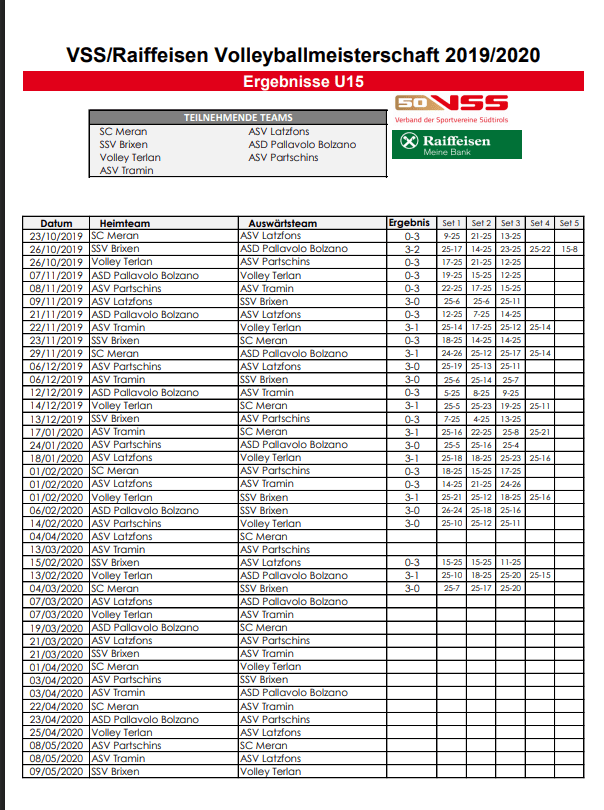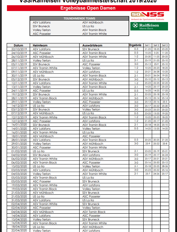 Folgende Mannschaften trainieren 2019/2020 beim ASV Latzfons Volley: